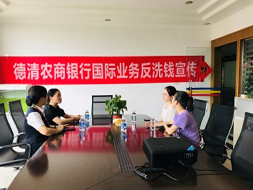 6月29日上午,我行国际业务工作人员来到浙江永联汽车配件有限公司开展国际业务反洗钱宣传。此次宣传通过座谈会的形式与客户展开亲切的沟通交流,积极做好提示与解释工作。提醒客户谨慎与洗钱高风险国家地区的客户进行交易,防范风险。客户表示非常理解我行的反洗钱工作要求,对于我行要求的提供交易相关资料也会第一时间配合。