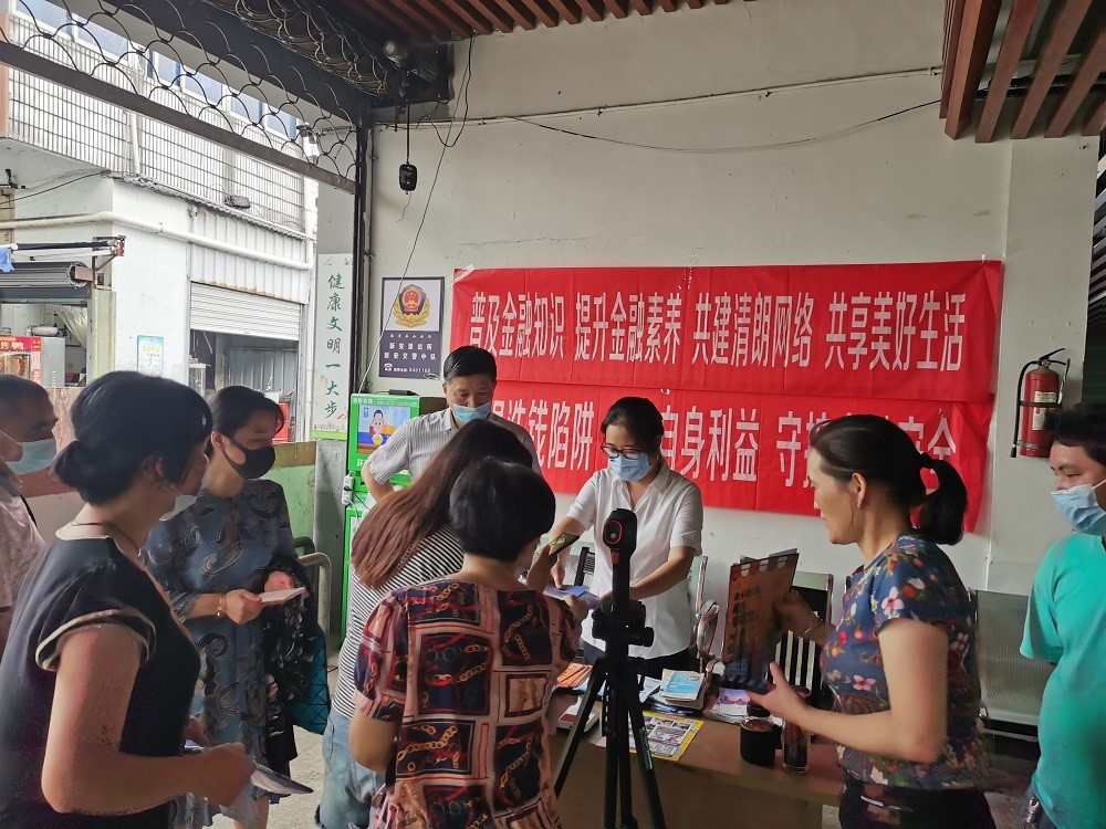 为进一步提高社会公众防范风险和正确使用金融服务的意识,引导金融消费者理性维权,积极构建和谐、良性的金融环境。新安支行积极响应总行号召,于9月10日在新安农贸市场开展“金融知识普及月 金融知识进万家 争做理性投资者 争做金融好网民”宣传活动。