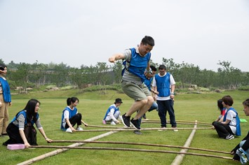 “开、合、开、合、开开合……”在跳竹竿舞的草坪上,三支队伍各执阵地,队内分工明确,迎合着教练有节奏的竹竿舞节拍,我行青年员工们认真学习、排练起了队内竹竿舞,在团队协作的合力下成功完成了竹竿舞的PK。