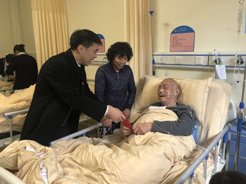 在新春来临之际,谢学民监事长一行带着行党委及行领导的关怀,走访了退休老职工。在退休老主任郭阿庆的病房中,谢学民监事长向他致以节日的问候,并祝愿老人家早日康复,老人家激动的热泪盈眶,家属们十分感动,对我行温暖关怀表示感谢。