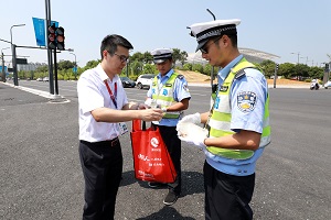 我行作为德清本土银行,一致热衷公益事业,在酷暑之际用爱心汇聚清凉,自2013年开始,我行便积极响应浙江之声联合农夫山泉等供水企业和爱心人士推出的“一杯水”公益行动,今年,我行更是赞助并参与了由浙江之声发起,德清县新闻中心承办的2018“一杯水”大型公益活动。在7月31日的启动会中,我行准备了1000余瓶矿泉水,100份包含毛巾、清凉油、藿香正气水等的防暑袋,并组织辖内各团支部书记与社会各界爱心人士一起走上街头,为坚守在高温下的户外工作者们送上“一杯水”、一份爱。