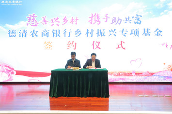 10月20日,我行和德清县慈善总会共同举办“慈善兴乡村 携手助共富”德清农商银行乡村振兴专项基金签约仪式,县民政局、县农业农村局共同到场见证。