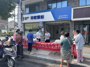 洛舍支行巾帼文明岗开展反假反洗钱宣传活动
