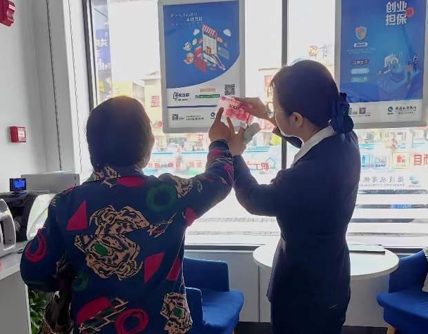 洛舍支行巾帼文明岗开展反假货币宣传活动